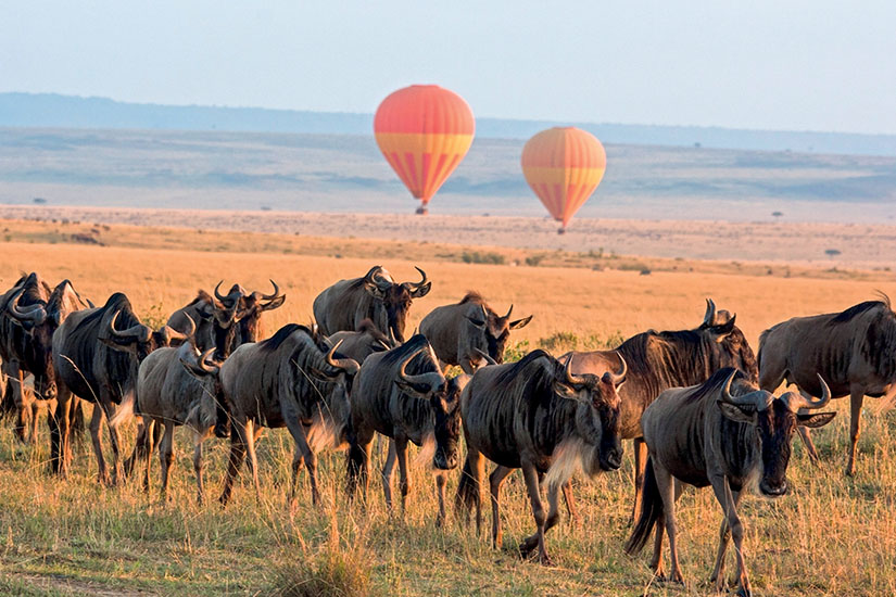 • Réserve nationale du Masai Mara – Deux jours entiers de safari avec observation des Big Five, suivi des prédateurs, et possibilité d’assister à la migration annuelle (juillet–octobre) ; safari en montgolfière optionnel.